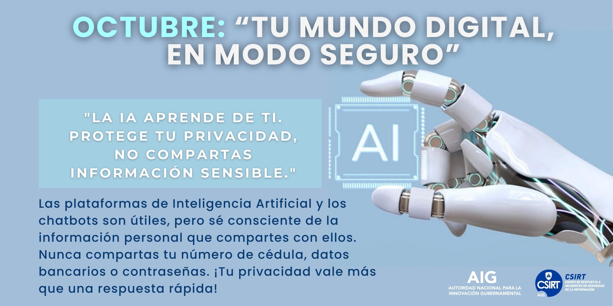 “La IA aprende de ti. Protege tu privacidad, no compartas información sensible.”